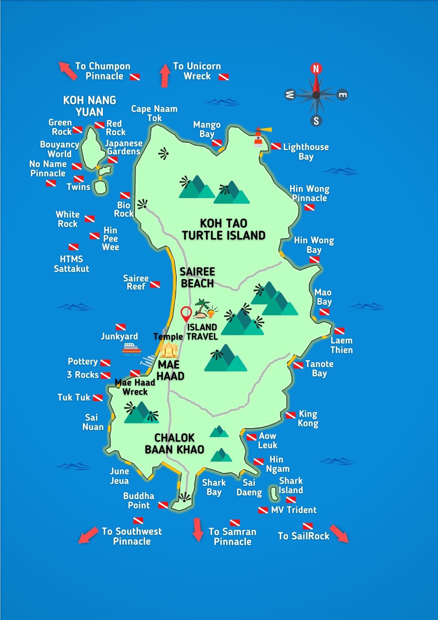 Koh Tao Map | Ile de la tortue, Thailande voyage, Thaïlande