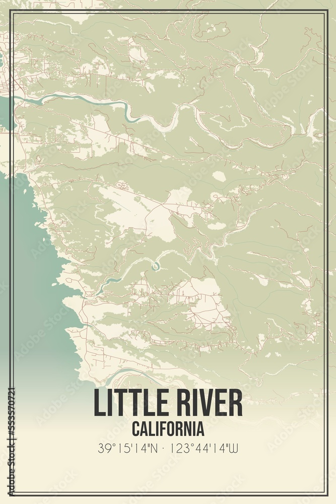 Retro US city map of Little River, California. Vintage street map