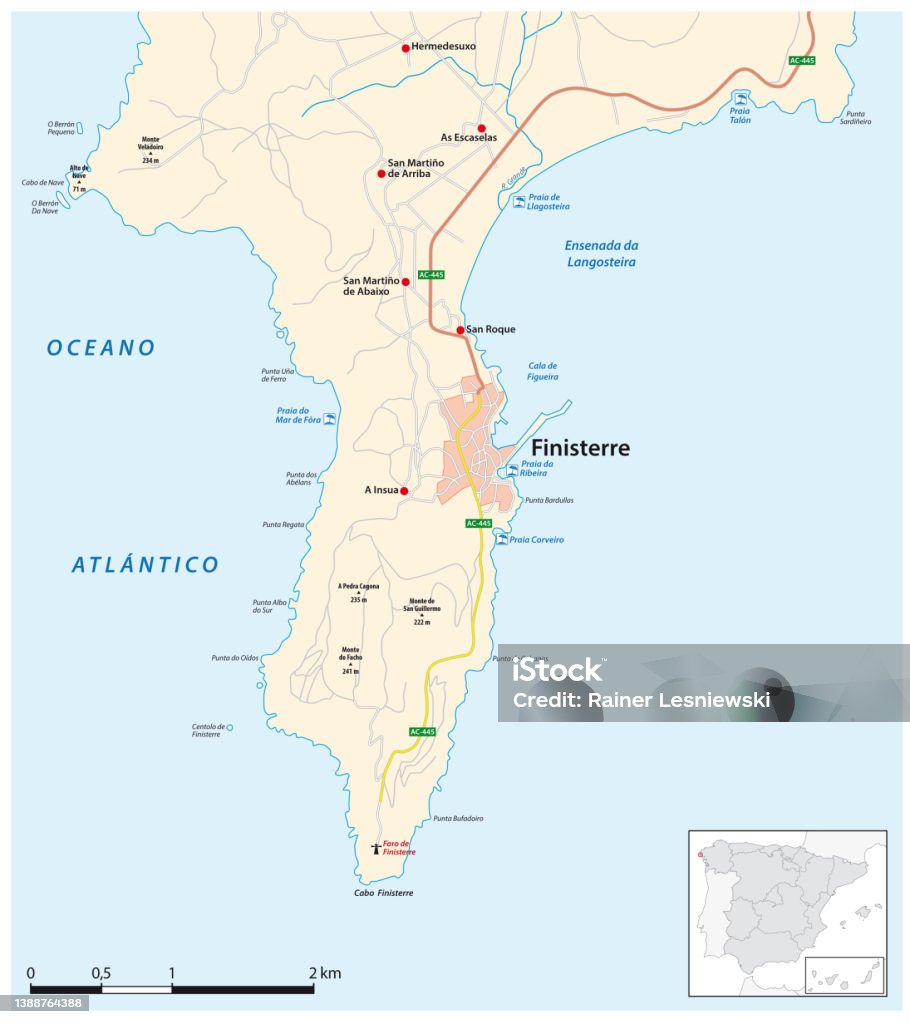 Map Of Cape Finisterre On The West Coast Of Galicia Spain Stock